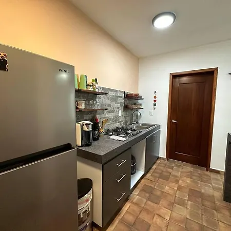 Ett kök i villan Private Fresh Pool, Huge Garden, Xcalacoco Beach är utrustat med kylskåp. Gästerna kan njuta av en måltid på restaurangen Kuchitril, som ligger cirka 3 km bort.