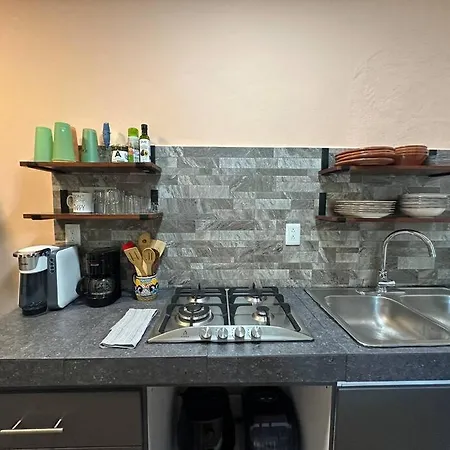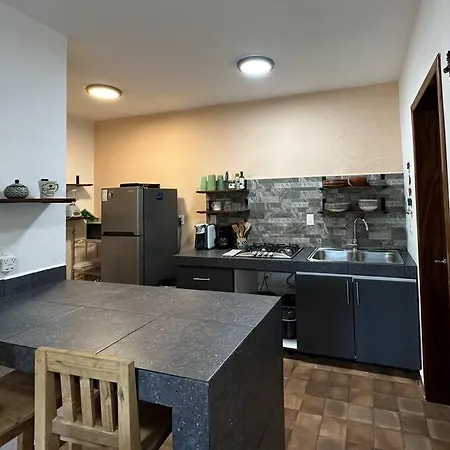 Ett kök finns i villan Private Fresh Pool, Huge Garden, Xcalacoco Beach. - ❓